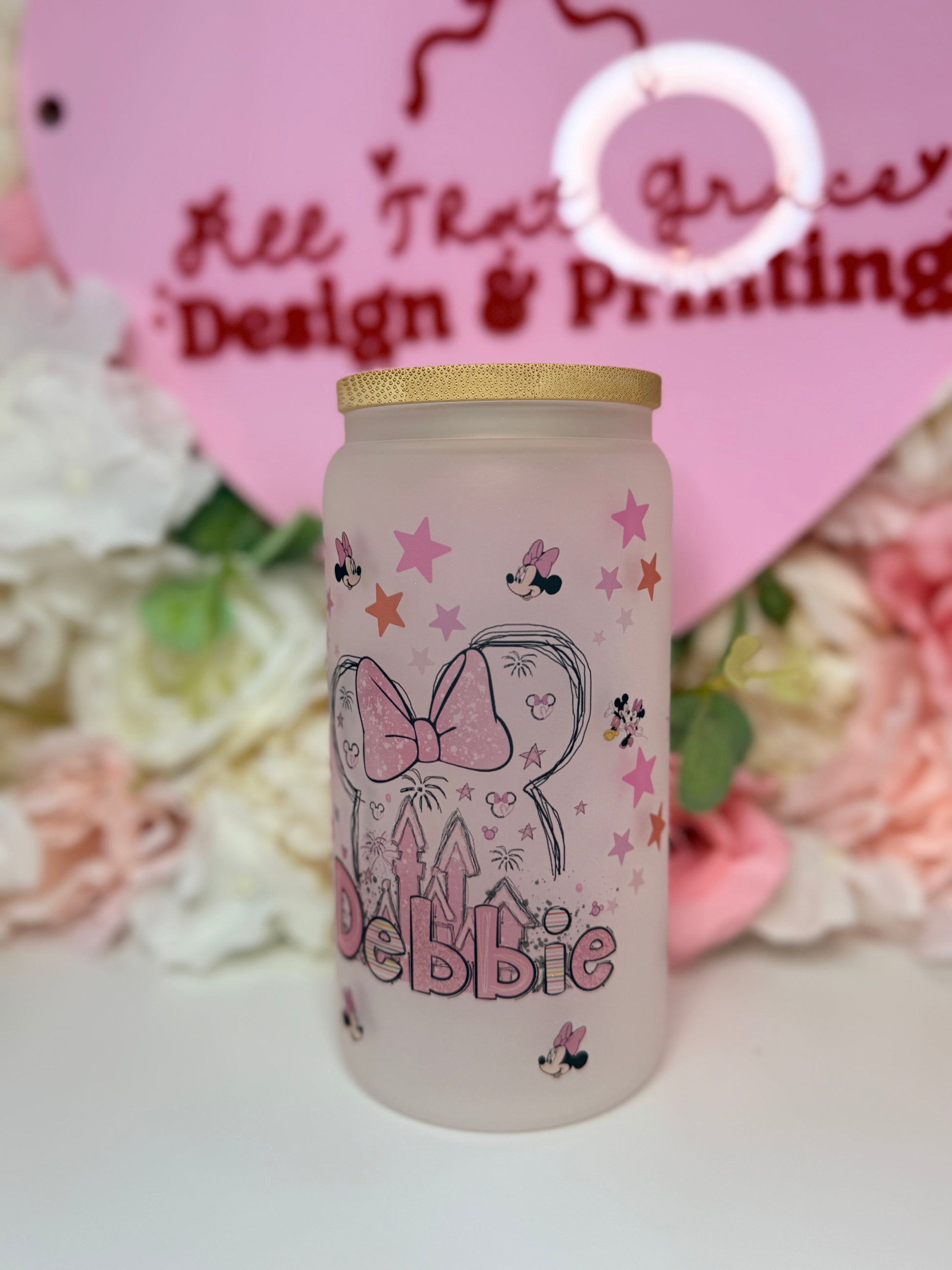 Custom Theme Frosted Glass Libby Cup With Clear Lid Santa/ Character
